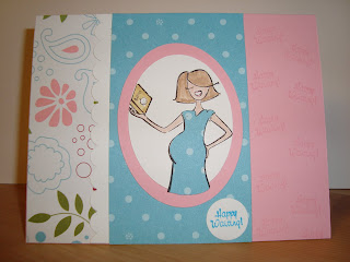 We had another announcement at church this morning, so I had to come home and get busy making another card using my old standby stamp set by Stampin' Up! "Swell News". When I was trying to decide what to do, I found this sketch from Sweet Sunday Sketch and knew it would do this card justice. So here it is! Also while I was out looking, I knew it would go well with the challenge from Stampin' Sisters in Christ Challenge where you were to make a baby card or project, or a card for an expectant mother. So I got two challenges in one card. How cool is that? It came from their scripture for today Jeremiah 1:5 "Before I formed you in the womb I knew you..." (NIV). That is actually what reminded me to do a card for the mother and father.
